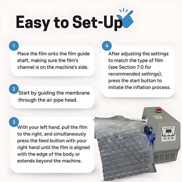 • Perfect for Pillow Bags: The machine inflates more air into pillow bags with a precise 3mm sealing contact gap, ensuring a secure and smooth seal.